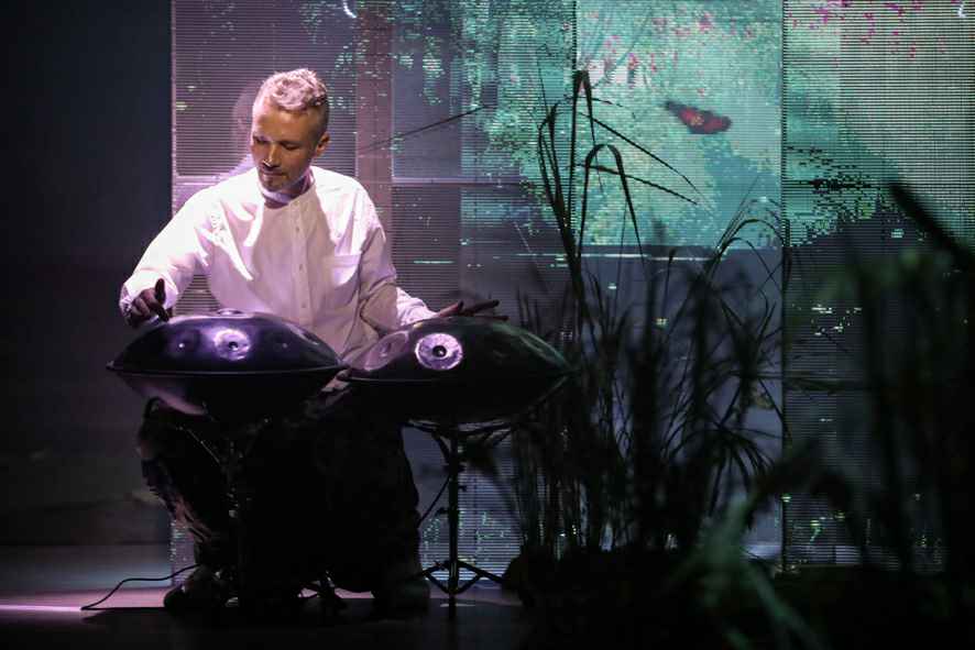 现场手碟演奏拉开了欧柏兰奴2019春夏新品发布会的序幕。氤氲的气氛包围着全场,3D高科技全息投影效果,让人身临其境的进入到的花之秘境的世界。